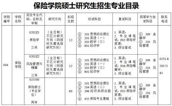 目前学院设有保险学(2014)(专业代码:0202Z1)、风险管理与精算(2015)(专业代码:0202Z2)两个学术型硕士点,以及一个保险专业硕士点(2011)(专业代码:025500),是应用经济学博士点(2016)和博士后科研流动站(2019)覆盖学科,2016年入选山东省应用经济学一流学科。山东财经大学位列2024年全国财经类高校十强,在山东省排名第一,保险硕士是省内规模最大硕士招生点。