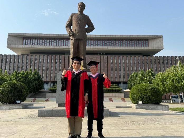 图8 申宇鹏与硕士导师于新亮在山东财经大学合影