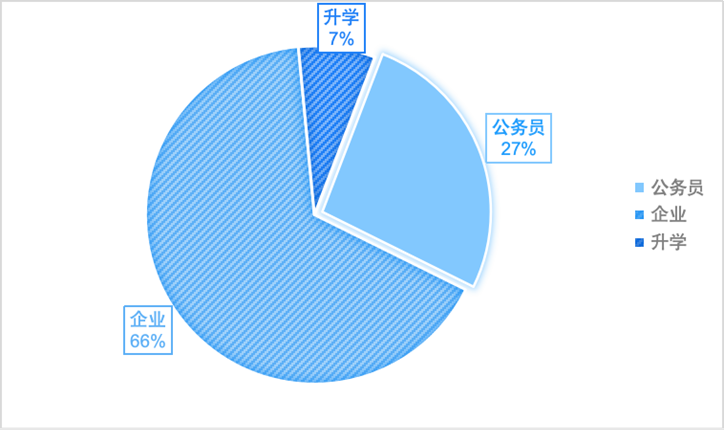 近年来,保险学院的毕业生就业去向遍布全国各地,包括中国平安、中国人寿、太平洋保险、中国人民财产保险、泰康保险等国内知名保险企业,以及中信证券和中金证券等国际知名的金融保险部门。国家金融监督管理总局、中国人民银行、国家税务总局、山东省商务局、中共济宁市纪律检查委员会机关等政府机构和部门。同时,也有部分优秀毕业生选择继续深造,进入波士顿大学、墨尔本大学、利兹大学、曼彻斯特大学、对外经济贸易大学、南开大学、山东大学、北京师范大学、湖南大学、中南大学国内外顶尖高校攻读博士学位,为自己的职业生涯注入更多动力。其中2023年,硕士毕业生考博率为7.4%;就业率为92.87%,且就业层次高,27%考取公务员。2024年考博率93.3%,就业率为99.5%。