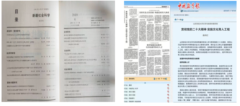 学院文化产业管理专业 2020 年获批国家一流本科专业建设点,汉语 言文学专业和新闻学专业 2021 年获批省级一流专业建设点。《国学经典 导读》《网络传播概论》2020 年获批省级一流本科课程;《艺术学概论》 2023 年获批国家一流本科课程。近五年,学院获批国家社科基金项目 5 项,省部级项目 20 余项;共出版学术专著 36 部;在学校规定的 B 类以 上期刊发表高水平学术论文 50 篇;获得山东省社会科学优秀成果奖 1 项, 省教育厅优秀科研成果奖 1 项。