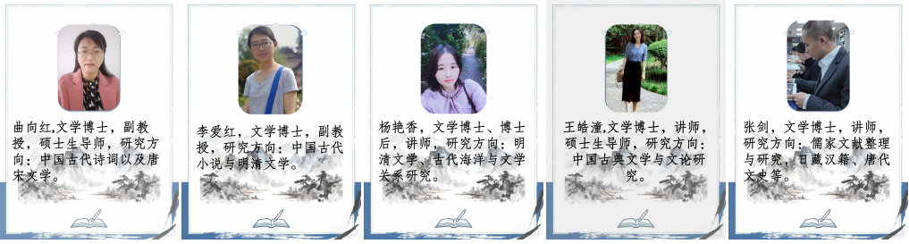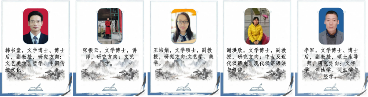 师资力量按照教育部二级学科专业编码顺序(050101文艺学、050103汉语言文字学、050105中国古代文学、050106中国现当代文学,同一专业再按照年龄顺序排列)简要介绍如下: