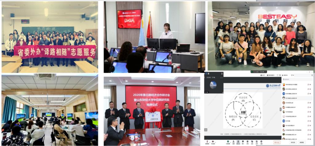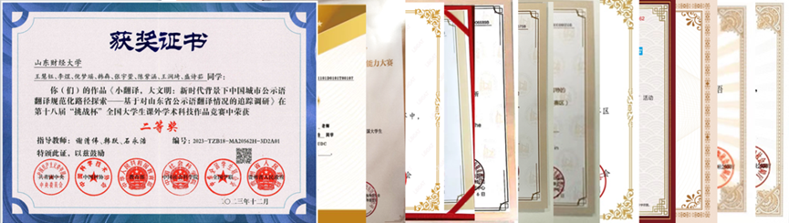 与山东省外办、甲骨易翻译有限公司等18家企事业单位建立协同育人机构、建设多元化实践平台,强化多元合作,进行多路径实践。推荐优秀学生到政府机关、翻译公司、跨国企业、语言服务本地化部门等进行针对性实践。近5年完成了近 4千万字笔译项目,参与300余场次口译活动,师生荣获国际、国内各级奖项 200余人次,实现了多形式平台建设与实践教学“翻译+”的目标。